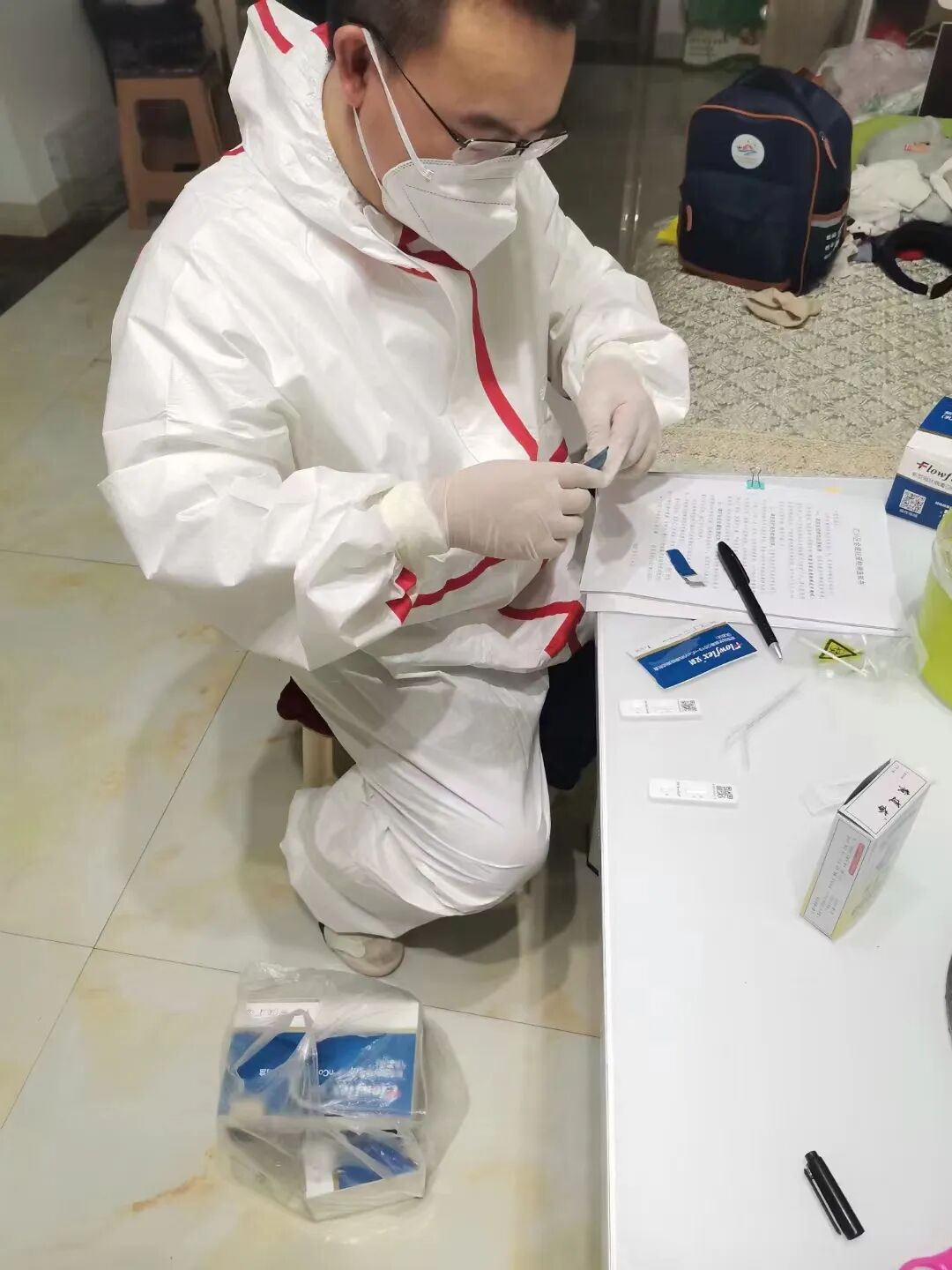 遵义茶业集团综合办公室负责人田宁飞正在进行入户抗原检测