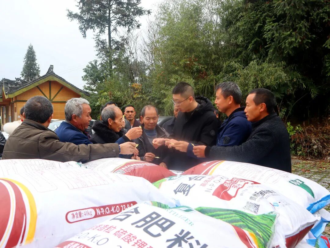 近日,湄潭县兴隆镇龙凤村兰馨茶庄园门前车水马龙,兰馨茶业工作人员正耐心细致地确认每户茶农的农资数量,组织大家领取茶叶专用肥。