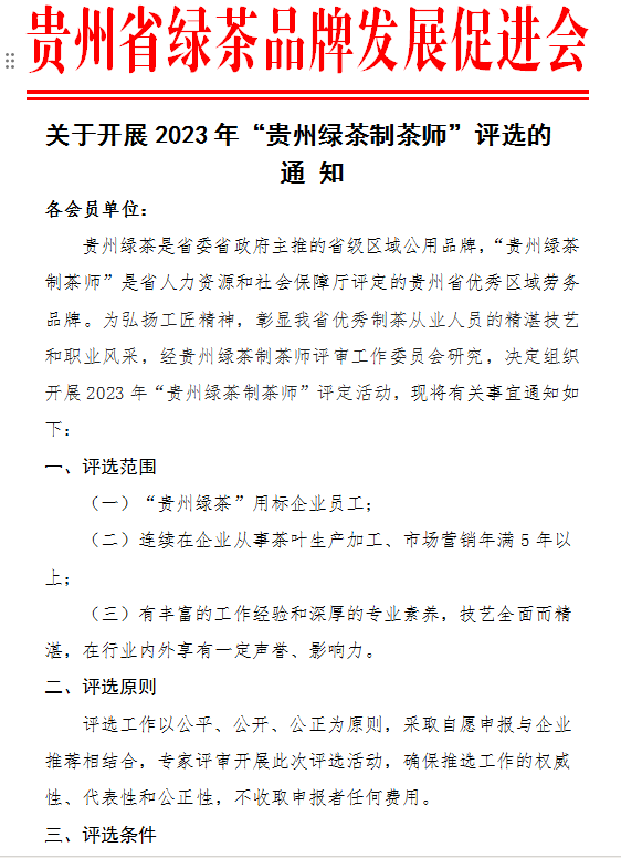 报名丨关于开展2023年“贵州绿茶制茶师”评选的通知