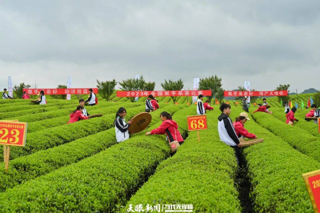 4月14日,2023年全国双手采茶比赛在湄潭县永兴镇万亩茶海火热开赛,73名来自全国19个市(州)的采茶高手们同台竞技,奋力争夺此次“金手指”。(后附获奖名单)