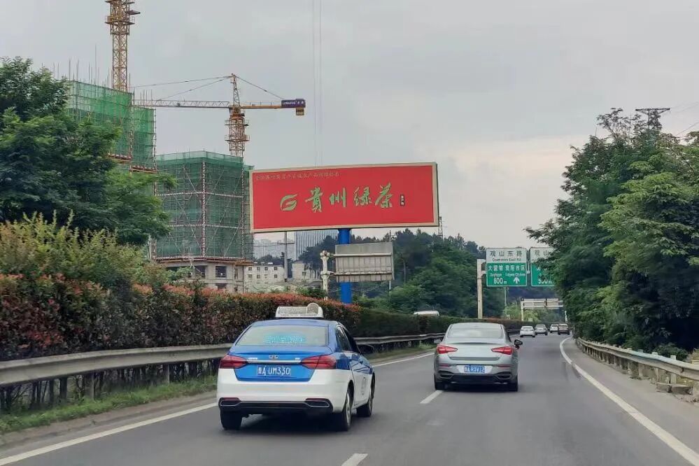 贵阳市主城区道路上的贵州绿茶宣传广告牌